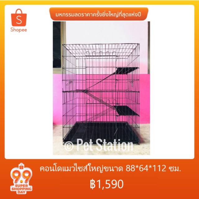 คอนโดแมวไซส์ใหญ่สุดของทางร้าน - ขนาด 88112 ซม. - มีให้เลือก 8 สี ชมพู / ฟ้า / ม่วง / ส้ม / เขียว / น้ำเงิน / ดำ / ขาว - สีชั้นและกรงคละได้ (กรุณาแจ้งเพิ่มเติมทาง ระบุสีหรือไซส์ของสินค้า หรือฝากข้อความถึงผู้ขาย) - สามารถประกอบเองได้โดยใช้ครีม *3ชิ้นราคาส่ง **สั่งซื้อครั้งแรกขั้นต่ำ200บาทใช้โค้ด NEWFTSA ลด100บาทจ้า ***ราคาส่งรบกวนทักแชทค่า วิธีการใช้แอพช็อปปี้ : How to use Shopee >>> https://www.youtube.com/watch?v=c4Vv1l--LDk คอนโดแมว กรงแมว กรงสัตว์เลี้ยง คุณภาพเกินราคา แม่ค้าใจดีถามได้ตลอดค่า จำหน่ายทั้งปลีกและส่ง ราคาส่งทักแชท คุ้มเกินราคา