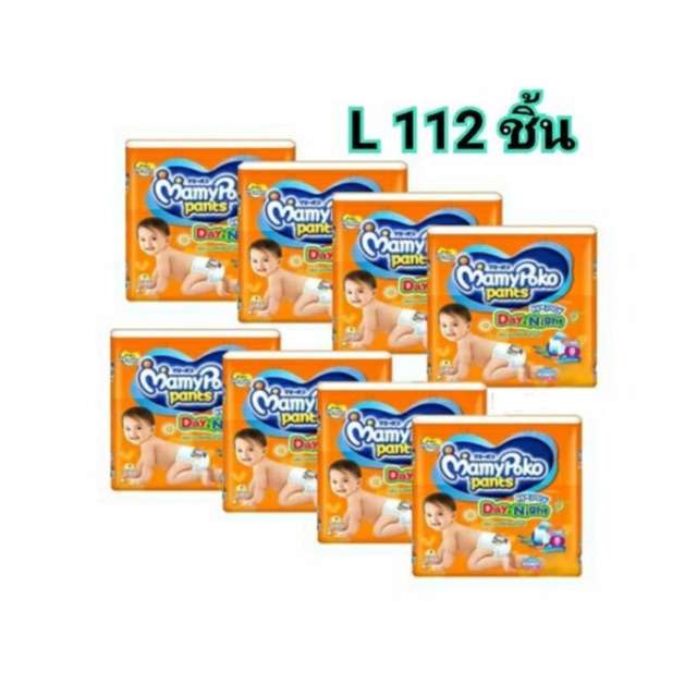 ขาย ส่งยกลัง Mamy Poko กางเกงผ้าอ้อมแพมเพิส รุ่น เดย์-ไนท์ ไซส์ Lรวม 112ชิ้น (8แพ็คแพ็คละ14ชิ้น) ราคาถูกส่งฟรีทั่วประเทศ