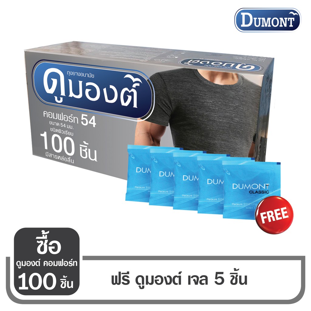 - ราคา ถุงยางอนามัย Dumont Comfort Size 54 ซื้อ 100 ชิ้น แถมฟรี เจลหล่อลื่น Dumont 5 ซอง