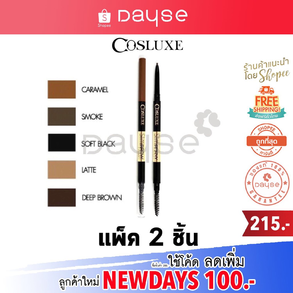 คุณสมบัติ *โฉมใหม่/ของแท้/พร้อมส่ง* Cosluxe SlimBrow Pencil : Cosluxe ดินสอเขียนคิ้ว x 2 ชิ้น