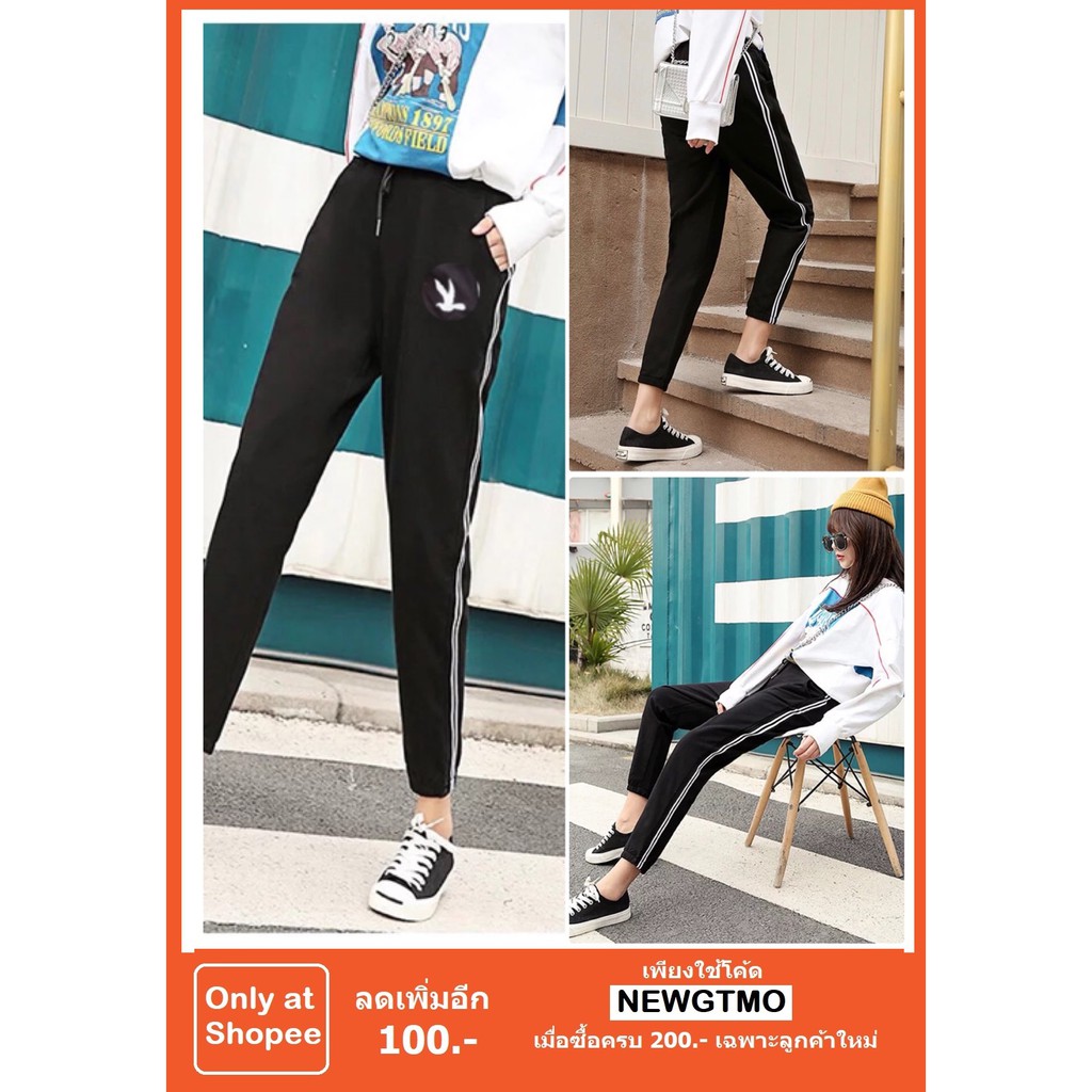 กำลังหา โปร?ลด?2?วัน?เท่านั้น? ถูก?สุด?ๆ?New กางเกงวอร์มปักนก แต่งแถบ สไตล์เกาหลี มีหลายแถบให้เลือก