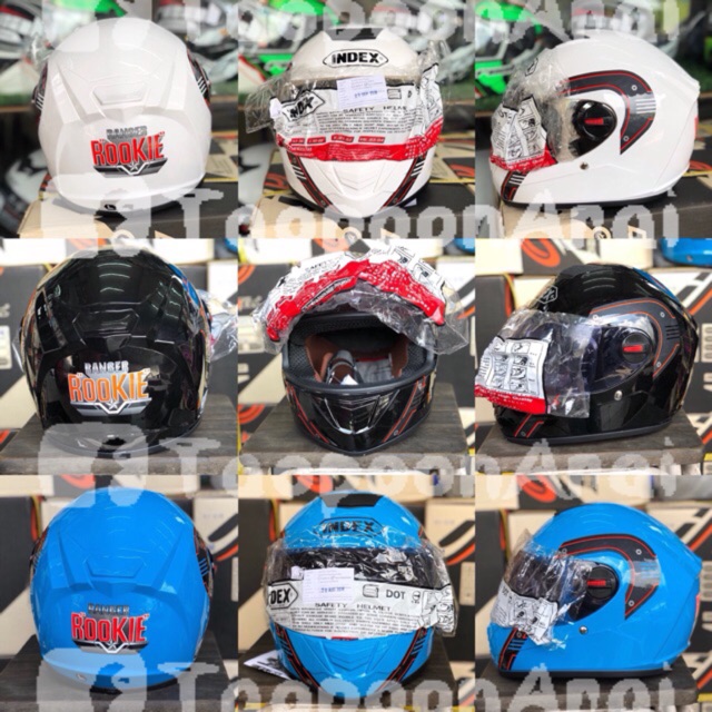 Rookie INDEX หมวกกันน็อคสำหรับเด็ก เต็มใบ หุ้มคาง ยี่ห้อ index มั่นใจคุณภาพได้เลยค่ะ สำหรับเด็กนะคะ เหมาะสำหรับเด็กโต ปลอดภัยแน่นอน ออกแบบคล้ายหมวกผู้ใหญ่ มีทั้งหมด 4 สี พร้อมส่งเลยจ้า หน้าหมวกสามารถเปิดปิดได้ค่ะ ถ้าหากลูกค้าสนใจ หมวกรุ่นไหน นอกเหนือจากที่โพส สามารถสอบถามได้ทางข้อความเลยค่ะ มีหมวกมากมาย หลายยี่ห้อเลยค่ะ ทั้งเต็มใบ ครึ่งใบ หุ้มคาง avex STM rider spacecrowns index real bimola หมวก หมวกกันน็อค หมวกกันน็อคราคาถูก หมวกกันน็อคเต็มใบ หมวกกันน็อคเด็ก ไม่เหมือนใคร น่ารัก หมวกเด็ก พร้อมส่ง